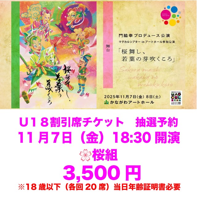 11月7日(金)18:30開演(桜組) 舞台「桜舞し、若葉の芽吹くころ」 U18割引席 (抽選)
